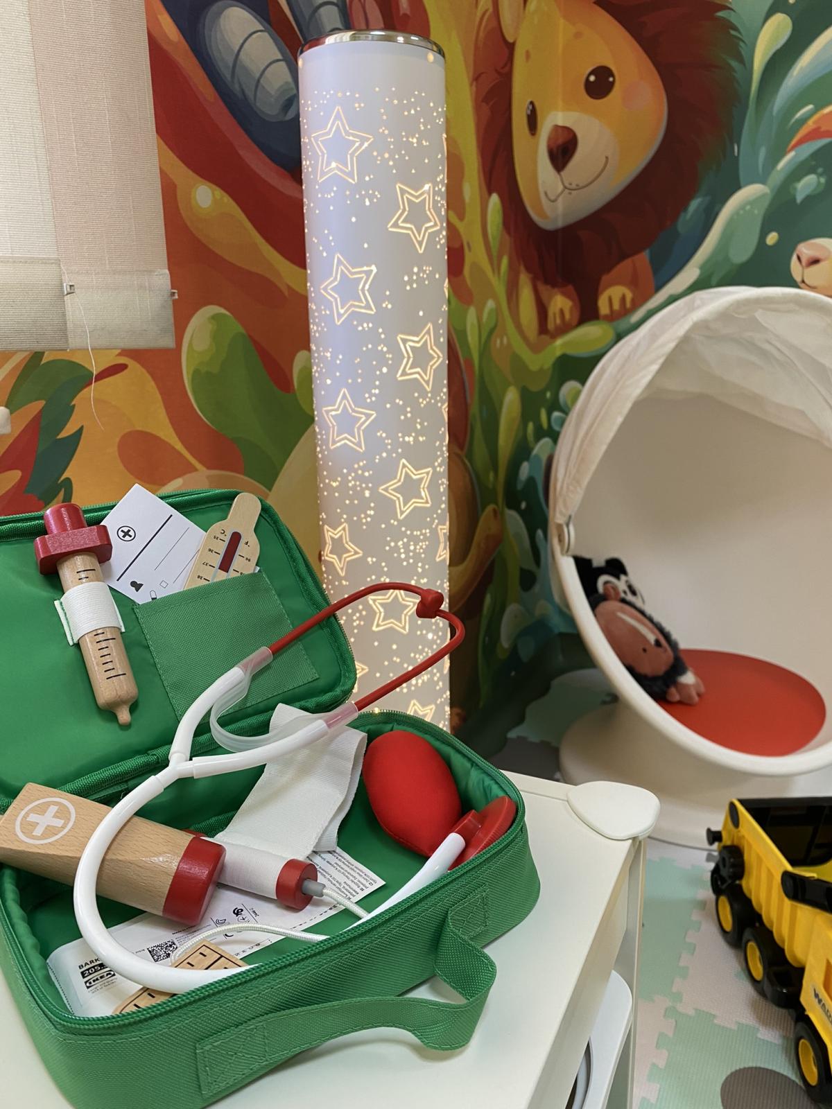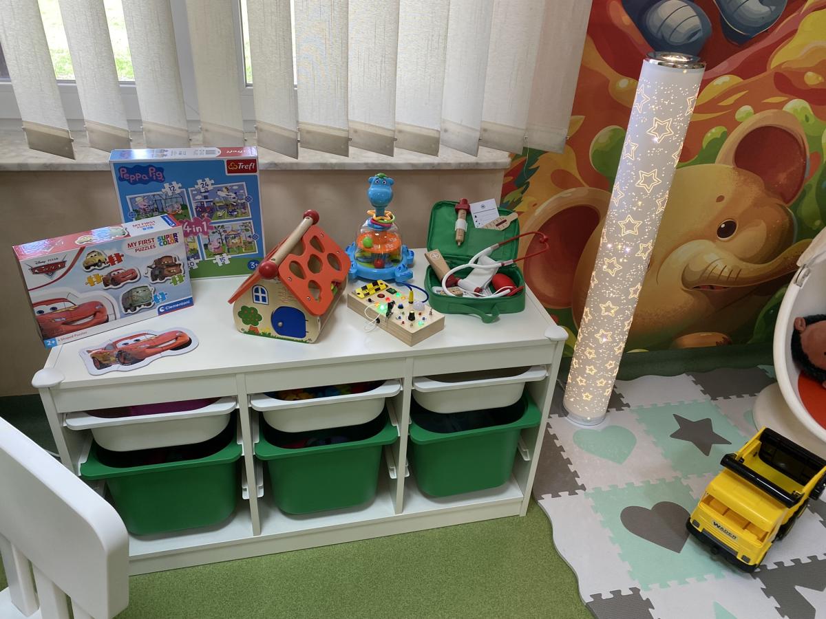 Z myślą o komforcie i dobrym samopoczuciu najmłodszych pacjentów zmodernizowaliśmy kącik zabaw w naszym Ośrodku Zdrowia. Nowa przestrzeń została wyposażona w edukacyjne i sensoryczne zabawki, takie jak zestaw "mały doktor", kreatywne klocki oraz zabawki wspierające rozwój zmysłów dziecka.